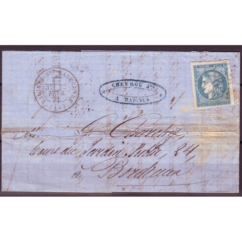 Emission de Bordeaux n° 45C Obl sur lettre