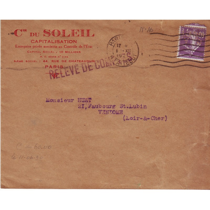 lettre n° 236 perforé SA  (compagnie du soleil) sur lettre