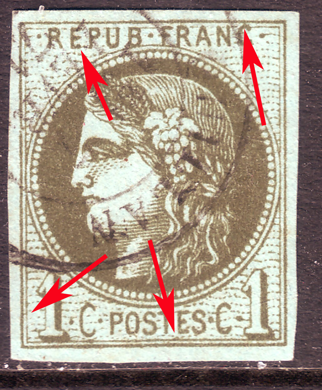 point de couleur à l'extrémité droite du trait inférieur du E de REPUB
