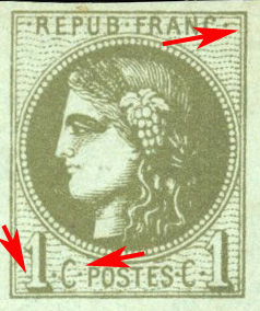 la 3eme ligne de burelage inférieur à gauche du 1 de gauche est doublée à droite par un 2eme trait et le plus souvent se présente sous forme d'une ligne épaisse quelquefois prolongée dans le chiffre 1