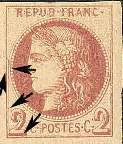 petit trait et point de couleur sous la partie droitedu 2 de gauche