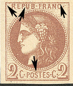très léger point de couleur dans le cadre au dessus de la droite du C de FRANC