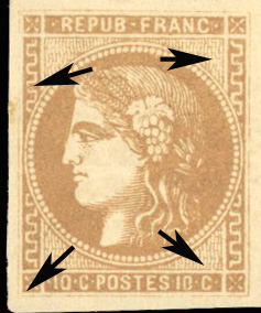 cassure du cadre intérieur au dessous du 3eme intervalle de l'imbriquement inférieur droit
