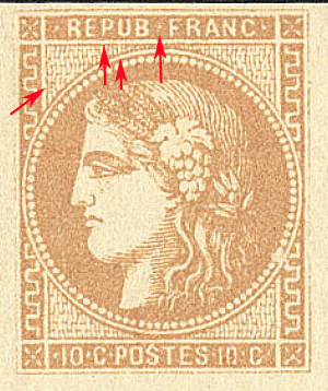 point allongé entre le B de REPUB et le F de FRANC dans les impressions légères