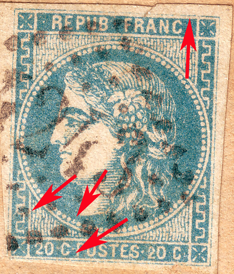 point de couleur à droite du 2ème élément horizontal de la grecque inférieure gauche